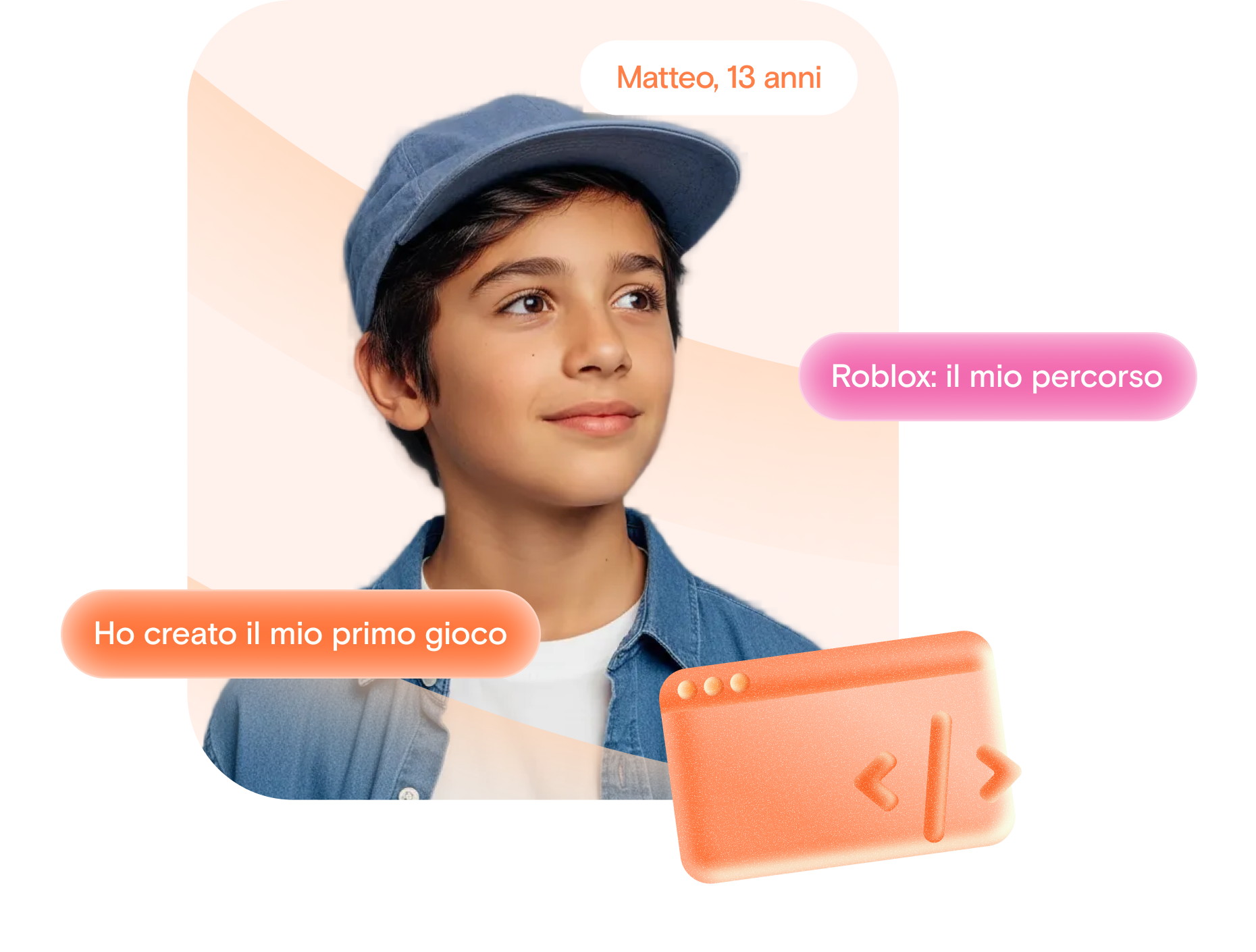 Ogni lezione trasforma la curiosità in competenze concrete per il futuro. Qui non ci limitiamo a scrivere codice: aiutiamo bambini e ragazzi a dare forma alle idee, trasformando i "e se…?" in progetti reali, costruiti sulle loro passioni.