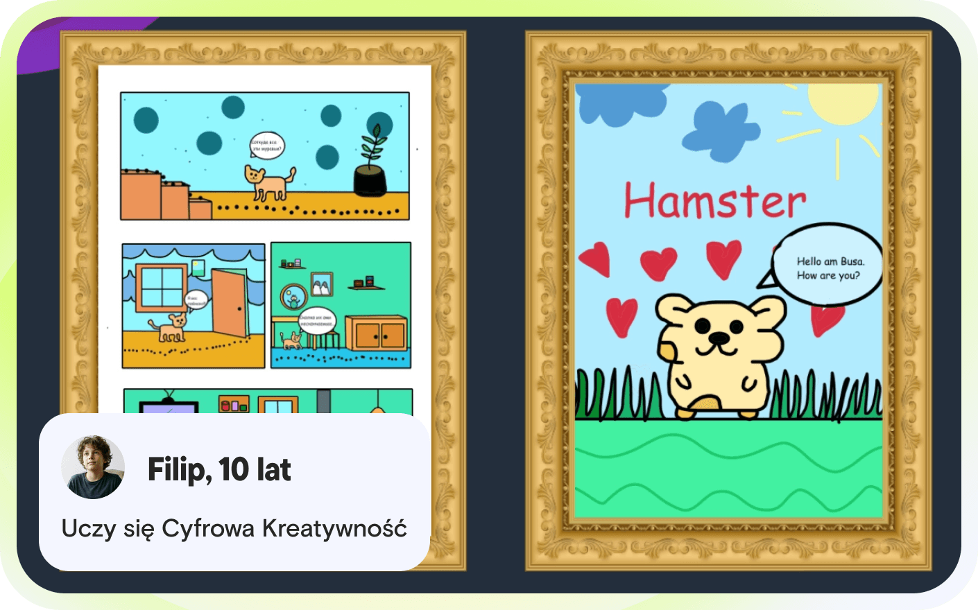 Wszystkie zadania i projekty są w jednym miejscu. Dzieci mogą wracać w dowolnym momencie do materiałów i śledzić swoje postępy od szkiców po gotowe prace.