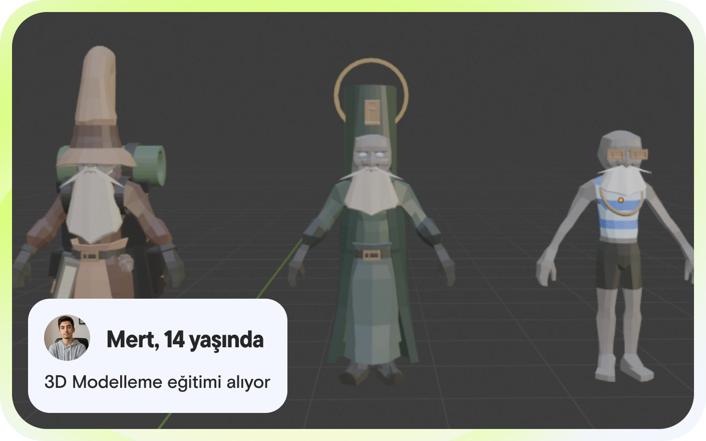 Afişlerden tam kapsamlı 3D dünyalara kadar çocuğunuz etkileyici görseller üretmeyi ve reklam, sinema ve oyun sektörlerinde kullanılan araçları öğrenir. Çocuğunuzun yaratıcı potansiyelini ortaya çıkarın. Grafik tasarım yapmayı, karakterlere hayat vermeyi ve 3D ortamda tüm dünyalar inşa etmeyi öğrenerek yaratıcı sektörlerde talep gören beceriler kazanır.